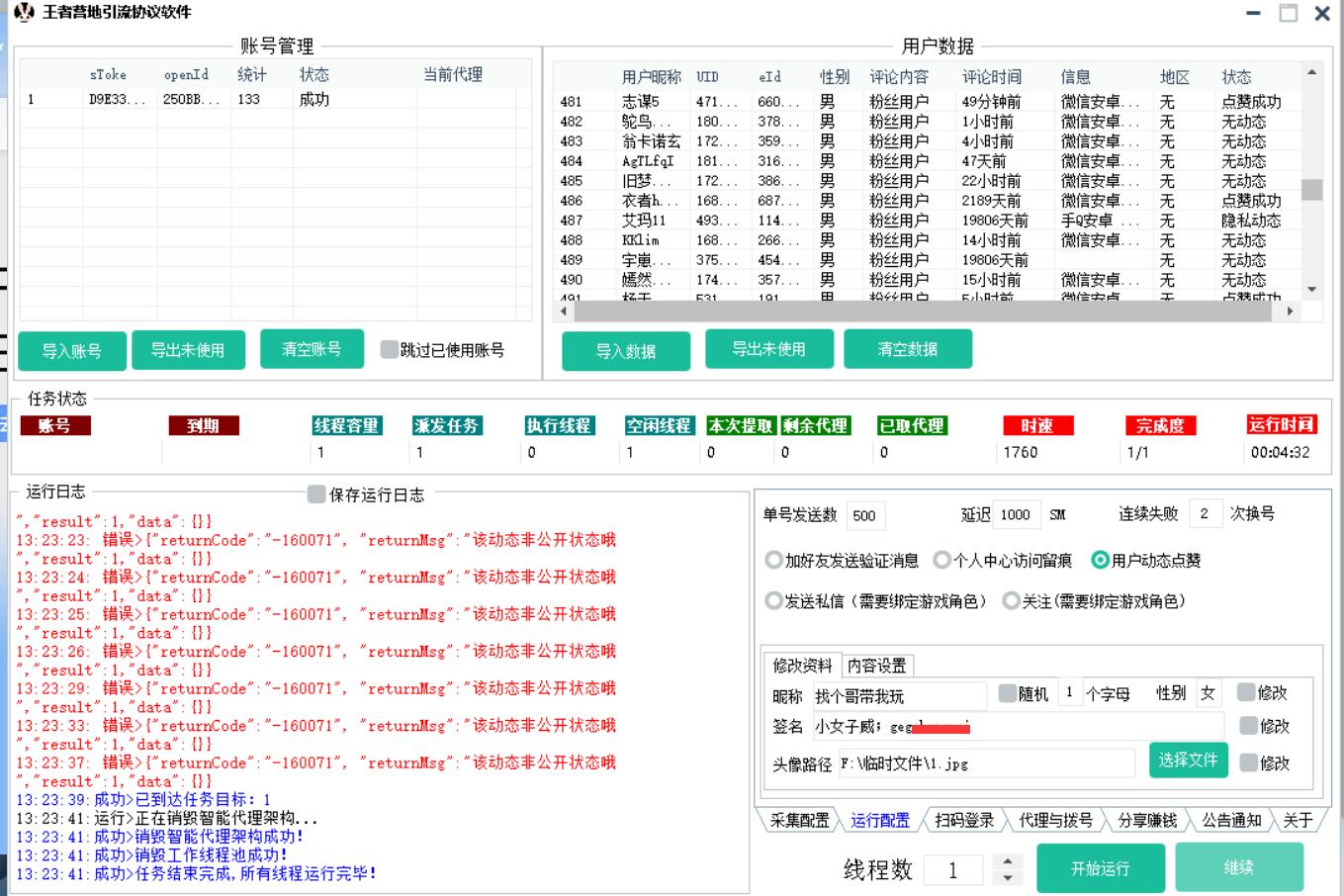 8.动态点赞 王者营地推广软件支持自动获取用户的动态并且给他的动态进行点赞
